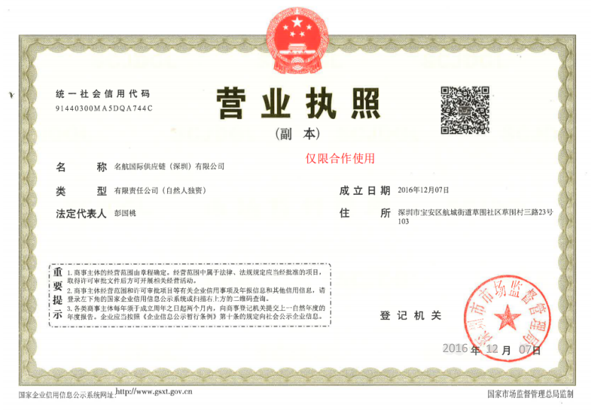 名航国际供应链(深圳)有限公司,是名航(香港)股份集团在深圳机场物流园投资成立的一家专注跨境物流、海外仓储、清关、派送及分销的供应链公司,并经外贸部和民航总局批准的一级海空运代理公司。凭借集团公司和海外的150个代理的深度合作。我司可为国内外客户提供良好的:国际快递、国际空运、国际海运一条龙、FBA头程双清到门、海外仓储、进出口、深港运输、报关 、报检等各种物流配套服务。